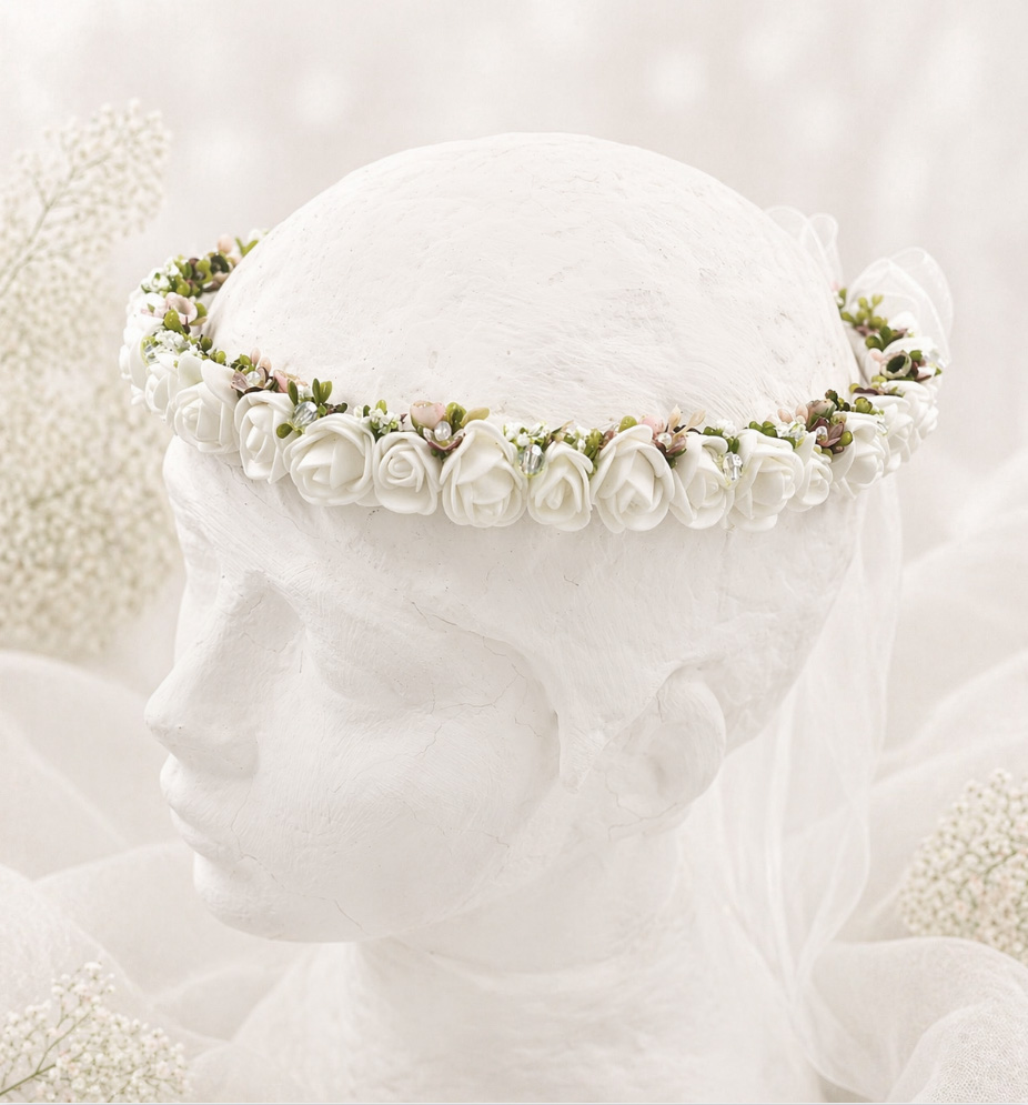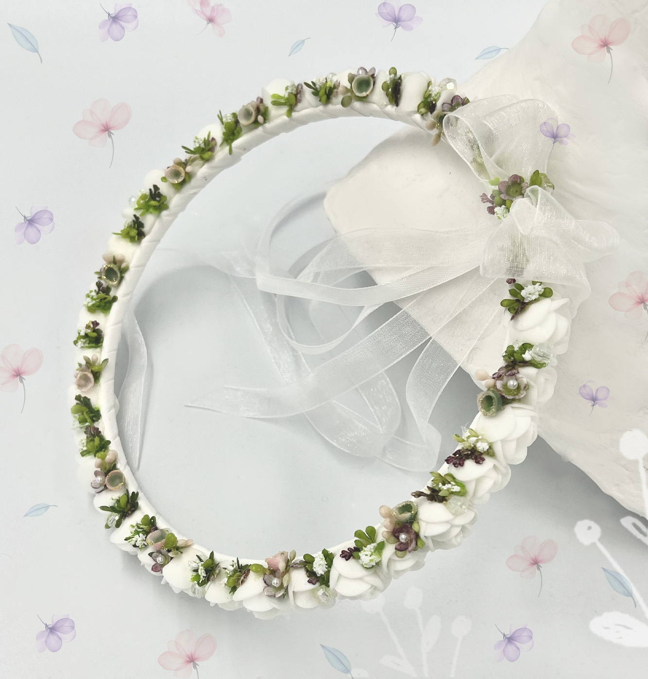 Ręcznie wykonujemy wianki komunijne w delikatnym, romantycznym stylu – pełne pastelowych kwiatów, subtelnych zdobień i lekkości, która idealnie podkreśla wyjątkowy charakter Pierwszej Komunii Świętej.
