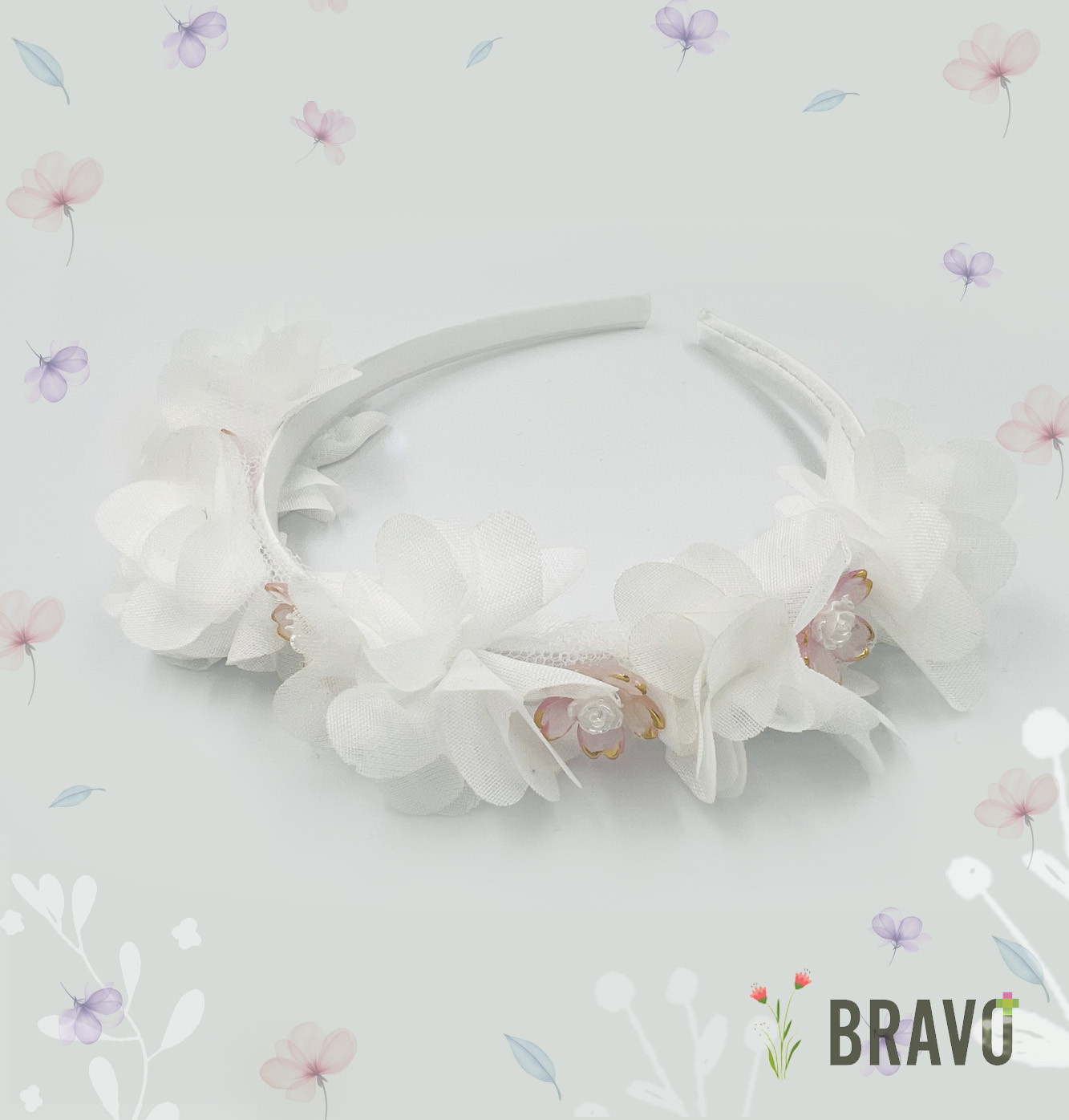 Delikatna, ręcznie wykonana opaska komunijna stworzona z myślą o wyjątkowym dniu Pierwszej Komunii Świętej. To subtelne połączenie romantycznych, pastelowych kwiatów w odcieniach pudrowego różu, kremowej bieli i delikatnego fioletu, które pięknie podkreślają dziewczęcy wdzięk i uroczysty charakter stylizacji.